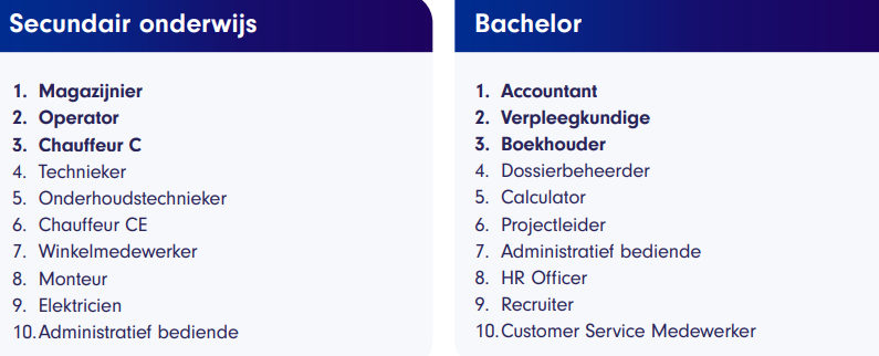 Naar welke beroepen is er dan de meeste vraag? Bij het secundair onderwijs zien we veel technische beroepen terugkomen. Dat is goed nieuws voor werknemers met een technische achtergrond, ze hebben hierdoor sneller de kans om een baan te vinden.