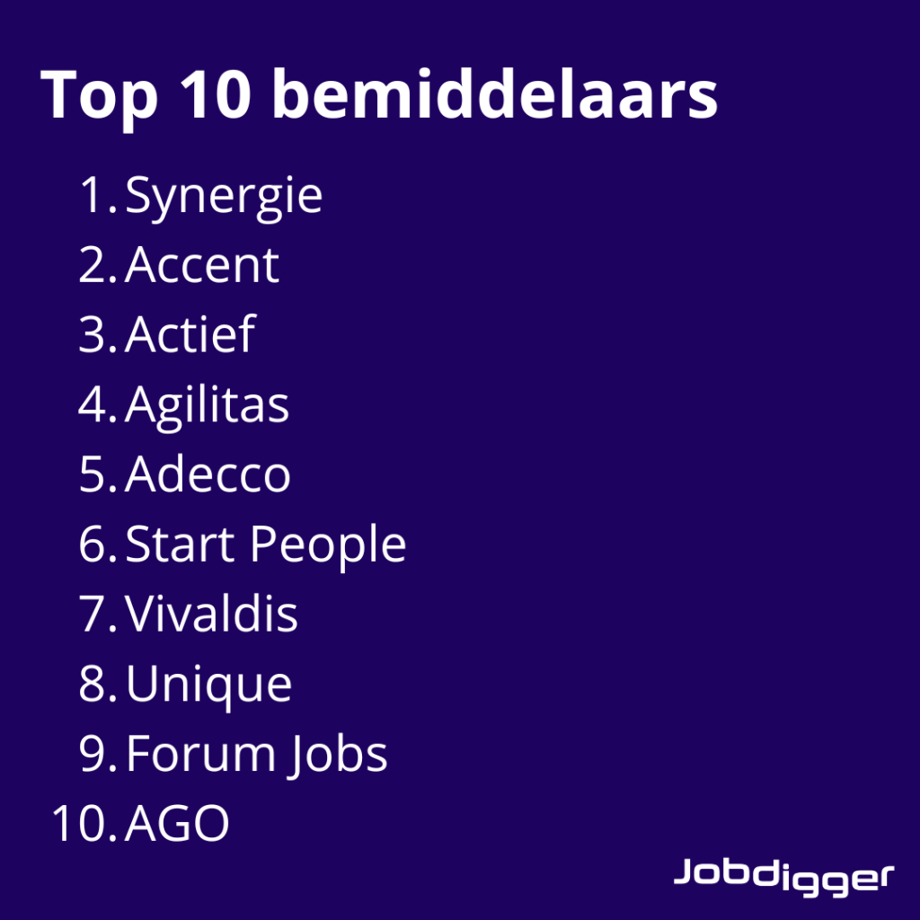 Zien we dan ook veel werkgevers en bemiddelaars terug uit de bovengenoemde branches? We bekijken hiervoor de top 10. Er komen een aantal werkgevers uit de industrie terug, zoals Molse Bouwmachines en Bobinindus Power Systems. Maar ook andere sectoren zijn vertegenwoordigd, zoals de zorg en de retailbranche.